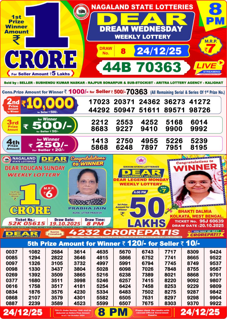 8 PM Result: Dear Dream Wednesday Weekly Lottery