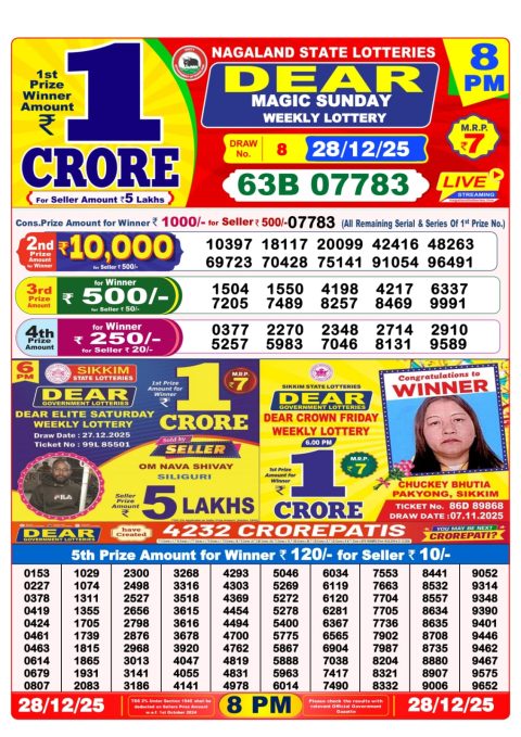 নাগাল্যান্ড রাজ্য ডিয়ার লটারির রাতের ৮টার ড্র সর্বাধিক অনুসন্ধান করা হয়।