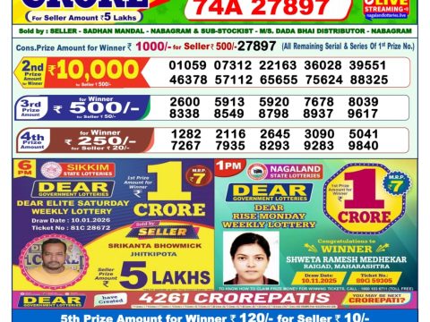 Welcome to the Nagaland State Lottery result. Today's 1 PM draw is officially known as the Dear Vision Saturday Weekly Lottery. Many users from Kolkata also search for this as মর্নিং লটারি সংবাদ (Morning Lottery Sambad).
