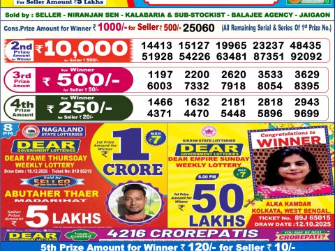 Dear Lottery Result Today 6PM Sikkim State 11/12/2025 Declared
