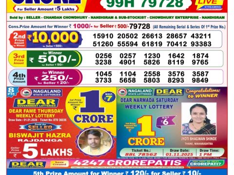 Dear Lottery Result Today 8PM Nagaland State 22/09/2025 Declared