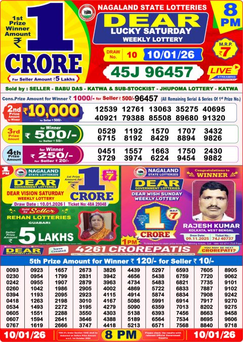 0 Comment on আজকের ডিয়ার লটারি সংবাদ 1 PM Result West Bengal 10-01-2026